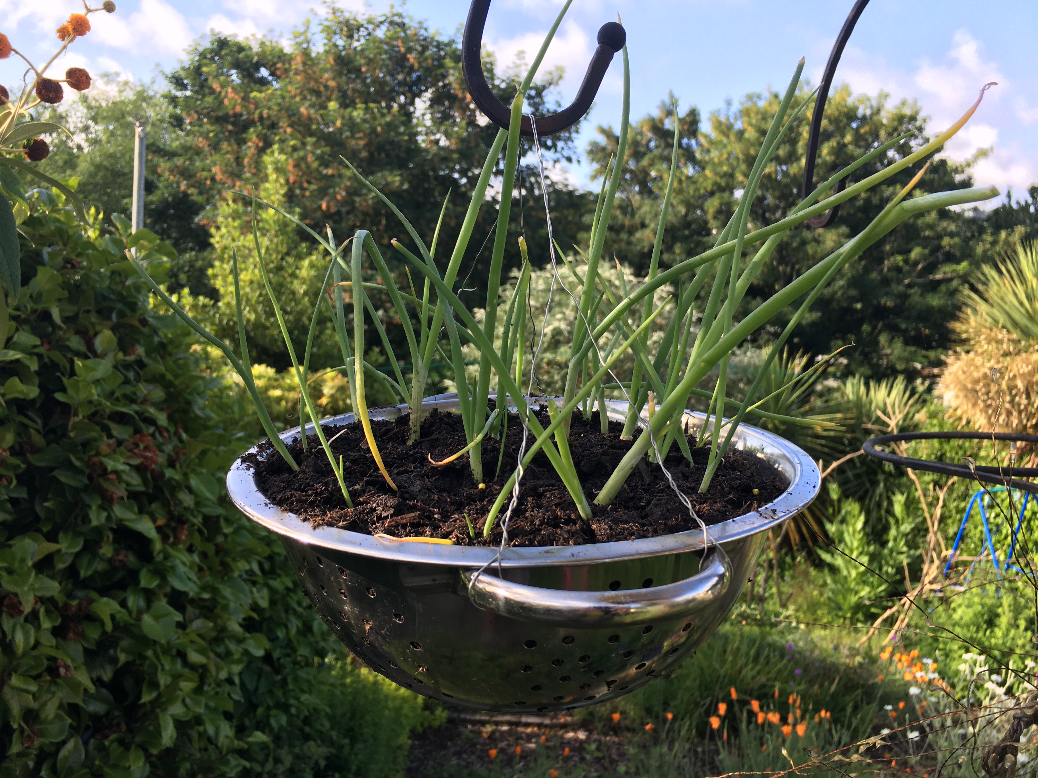 DeleteHello! Lovely to hear from you and get another glimpse of Long Mizzle in the sun. Love the sedum underplanting, the canna filtered sunlight and the suspended colander idea is pure genius! I would love to think that it might work for hostas, but they might look a bit weird! xxx